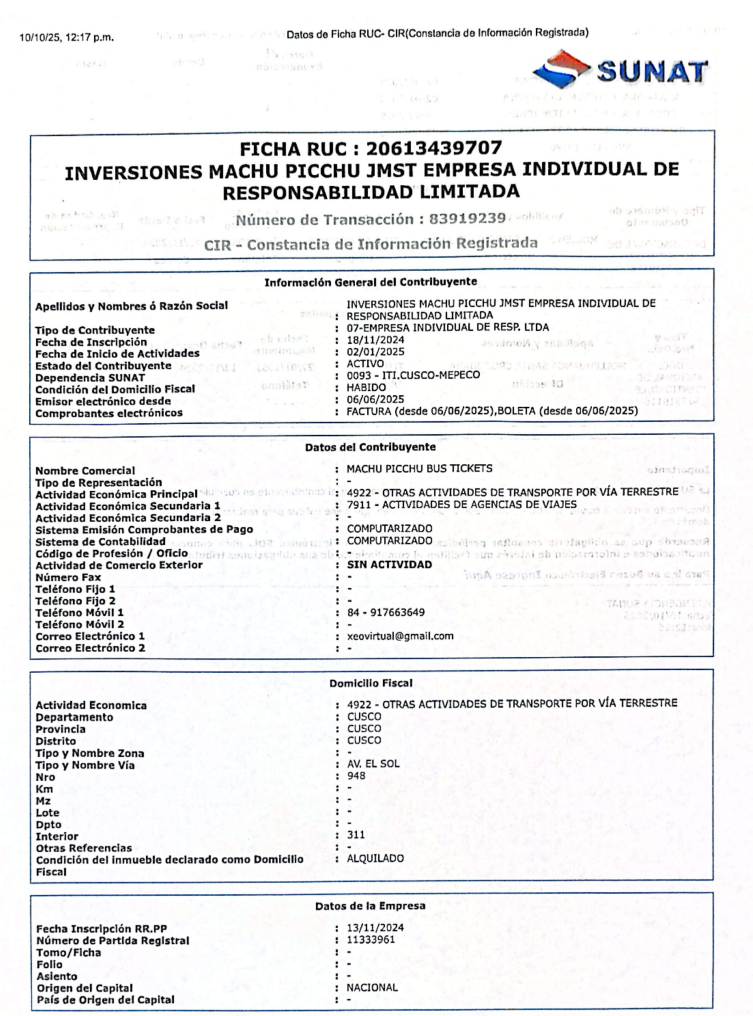 Inversiones Machu Picchu JMST